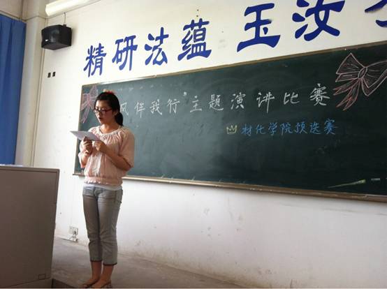 为庆祝“七一”党的生日,迎接十八大的胜利召开,响应我校党风廉政“清风伴我行”活动安排,2012年6月18日下午,材化学院于我校未央校区教A301举办“清风伴我行”主题演讲比赛学院预选赛。出席本次预选赛的老师有:材化学院党委副书记张治宏老师以及各党支部书记赵坤老师、程洁老师、王迪老师。