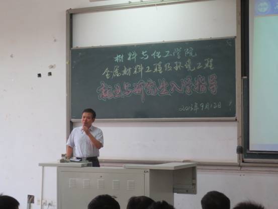 讲座中,材化学院副院长坚增运对金属材料工程与环境工程专业考研及就业情况做了详细分析,对大家的考研和就业问题给予了一定的指导和建议;副院长王正品和郭永春、朱满两位老师为同学们详细地介绍了考研的准备工作及我校材化学院硕士研究生的培养优势。党委书记张忠全面地分析了当前就业形势以及户口、档案及协议的签订等就业相关的问题。