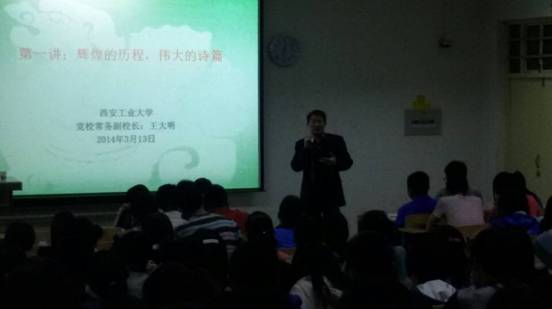 党校常务副校长王大明老师以“辉煌的历程 伟大的诗篇”为主题为材化学院学员们进行了第一次授课。