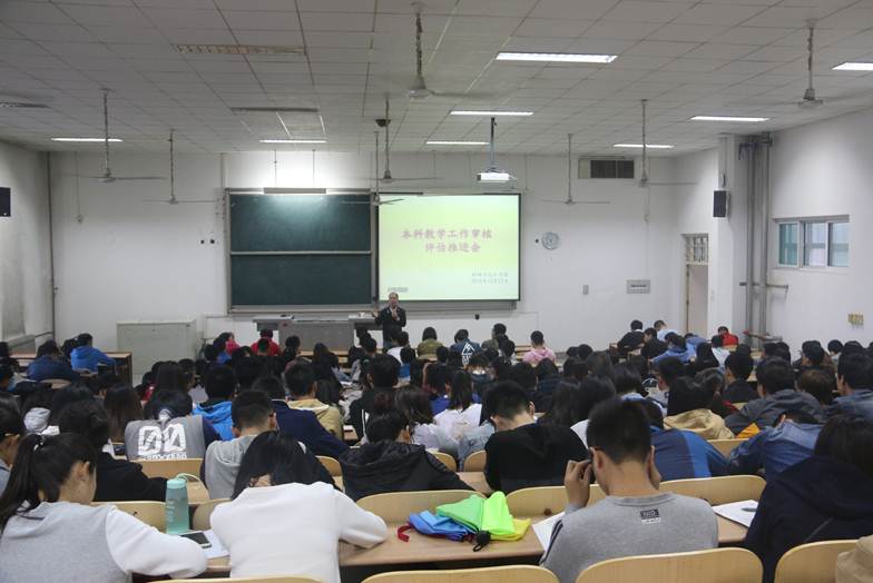 大会伊始,院党委副书记张老师首先从审核评估的由来与重要意义、关于做好审核评估的要求做了重要阐述。紧接着张老师从学风建设、宿舍文明养成两个方面对大家做了严格要求。张老师强调,在学风建设方面,每位同学都应该按时上课,不迟到早退,认真做好笔记,上课期间禁止看手机,禁止睡觉,坚决杜绝旷课。在宿舍文明养成方面,要严格按照学校相关要求保持良好宿舍卫生环境,达到如下标准:宿舍成员精神面貌良好,热情有礼貌;宿舍空气清新、无异味;门窗、玻璃、灯具干净;阳台、地面整洁无杂物;床具、桌椅及卫生工具与用品摆放整齐有序;墙壁装饰文明健康、简洁淡雅、无乱贴乱挂现象,无安全隐患存在。其次,张老师强调,审核评估是关系学校发展的大事,全体同学要高度重视,密切配合学校的安排,做好准备工作。最后,张老师要求各班长要根据会议精神在辅导员的组织下召开相关的主题班会,确保每一名同学都了解审核评估,熟悉审核评估,从现在做起,从自我做起,以审核评估的标准严格要求自己,为本次本科教学工作审核评估做出自己的贡献。