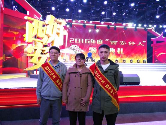 辅导员张瑞红、2014级学生郝亮亮、建筑工程学院2013级学生刘力泽参加了此次颁奖典礼,两名学生因在“见义勇为”方面突出表现荣获“西安好人”荣誉称号受到隆重表彰,颁奖典礼上,主办方通过视频展播、诗歌朗诵等形式深情再现了好人们的凡人善举。