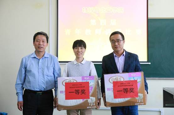 副院长陈卫星教授为获奖者颁发了奖品,并指出此次青年教师讲课比赛与往届比赛的有两点不同之处。一是注重教学设计。比赛内容由教学设计、课堂教学两部分组成,参赛教师须提供两个模块的教学设计。二是促进教学经验交流。在各参赛教师讲课结束后,给评委留出大量时间,从教学内容、教学组织、教学语言与教态、教学特色等方面与参赛教师进行全方位探讨。同时,陈副院长号召学院青年教师要认真对待教学工作的每一个环节,在教学上取得更好的成绩。