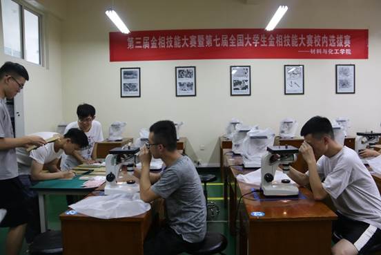 第三届金相技能大赛于工四-406和工四-408展开为期两天的百人竞赛,整个比赛过程在刘翠霞老师、陶栋老师、团委书记段强以及团学干部的共同努力下,9组参赛选手之间的比拼圆满结束。