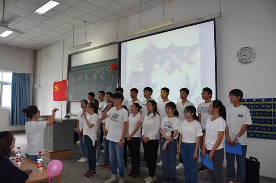 在教一401举办“经典永传唱,颂歌献给党”庆祝建党98周年主题党日活动。学院党委书记路金龙,党委副书记张艳霞,副院长陈卫星出席活动。