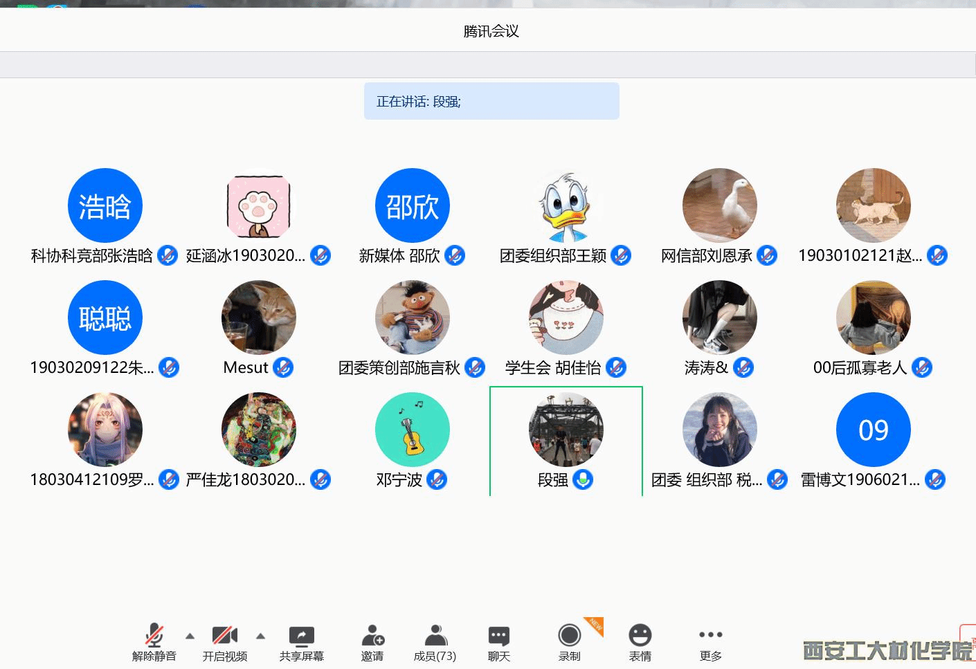 于2020年7月21日晚7时通过腾讯会议召开暑期社会实践启动仪式,学院团委书记段强老师、副书记乔娜老师及全院参加实践的同学参加此次启动仪式。