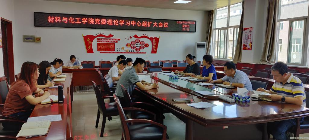 为深入学习贯彻习近平新时代中国特色社会主义思想,不断加强理论武装2020年9月4日,材化学院召开党委理论学习中心组扩大会议,学院党政领导、党委委员、全体党支部书记参加会议,会议由学院党委书记呼晓青主持。
