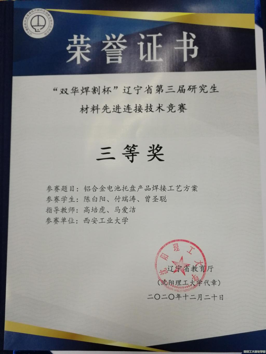 高培虎、马爱洁老师指导,研究生陈白阳、付瑞涛、曾圣聪共同完成的作品《铝合金电池托盘产品焊接工艺方案》荣获三等奖。同人小说