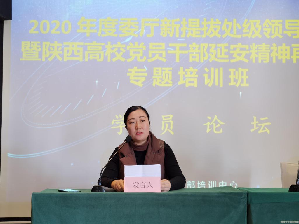 2020年12月25日-27日,2020年度委厅新提拔处级领导干部暨陕西高校党员干部延安精神再教育专题培训班在延安举行,全省40余人参加,材化学院党委副书记张艳霞在培训班上作交流发言。