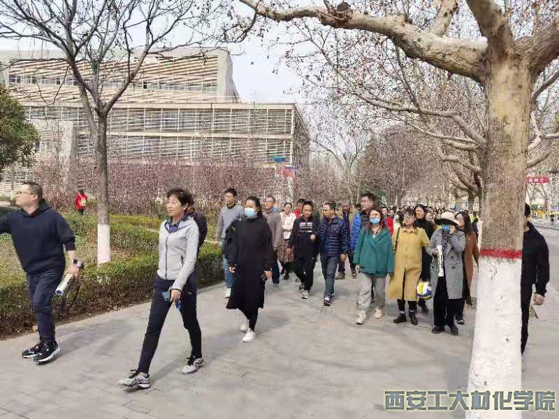 教职工精神文化生活,进一步开展全民健身活动增强职工身体素质,用健康的身体素质和心理素质投身于工作中,更好的迎接建党100周年。3月5日中午,材化学院举办“健步小康路 喜迎十四运”春季健步行活动,学院领导呼晓青、惠增哲及全院100余名教职工积极参与。