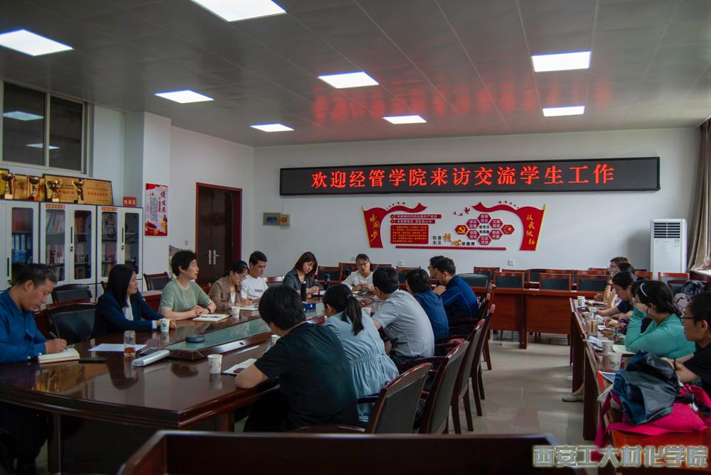 欢迎姬浩一行到来,并明确指出,学生工作交流会既促进学校的相关会议精神工作有效落实,也增加学院之间的交流互鉴,同时也为学院之间关于考研、就业工作借鉴经验做法提供学习机会。陈卫星和王育晓分别对应届毕业生的毕业去向情况做出介绍,并对学院之间的差异化工作执行办法进行了深入的探讨交流,并围绕2022年的就业形势做出切实可行的分析。各专业负责人和辅导员分别从学风建设、考研、就业指导工作中遇到的问题及解决方案进行交流,双方就当前形势下如何提高毕业生考研录取率、就业工作质量等进行进行了探讨。