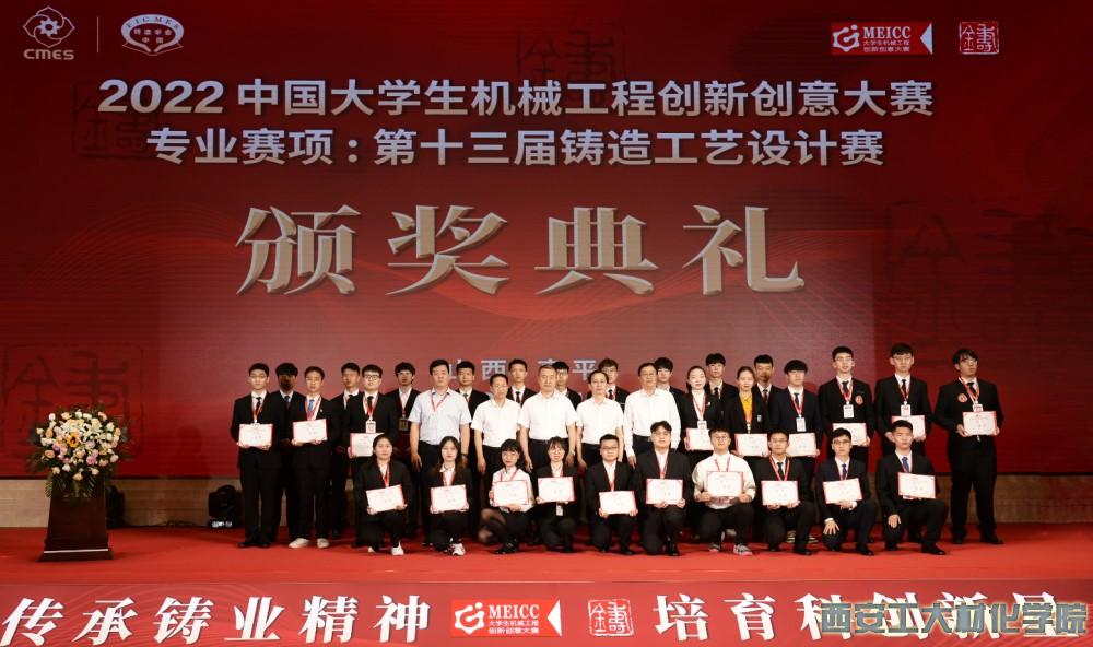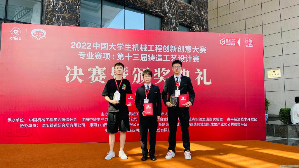 本科生组熊海涛、杨洋、田呁龙、刘晨宇团队荣获二等奖;田茜、金宇琪、钱科、陶鸿团队荣获三等奖;研究生组杨明年、马皓欣、曹旭团队荣获二等奖;赵磊、吴翰丰、王博团队荣获三等奖,同时,以上14位同学均获得见习铸造工程师资格证书。