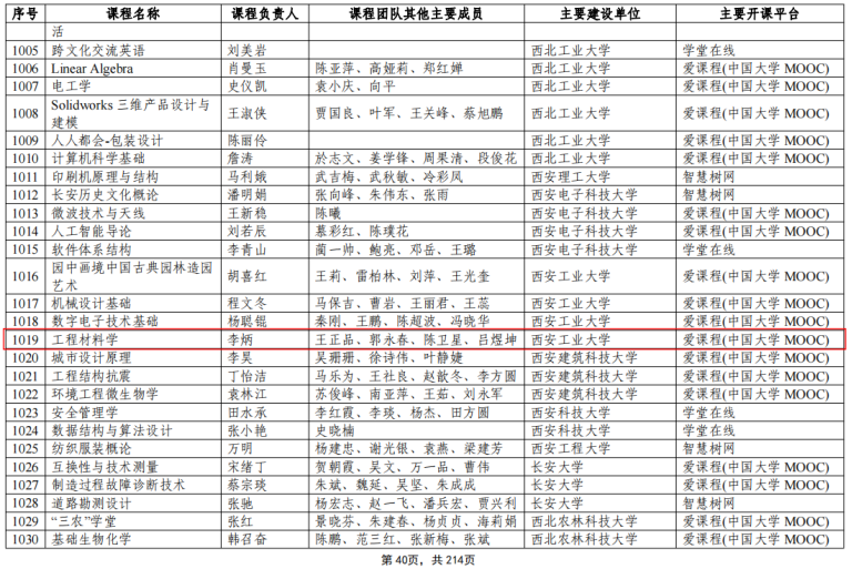 李炳副教授主持的《工程材料学》入选为国家级一流本科课程(线上)。此次国家级一流本科课程的获批为同人小说