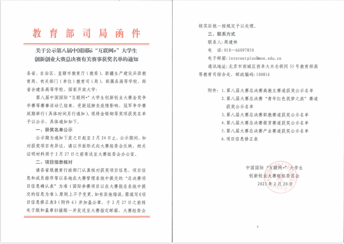 近日,第八届中国国际“互联网+”大学生创新创业大赛全国总决赛落下帷幕。