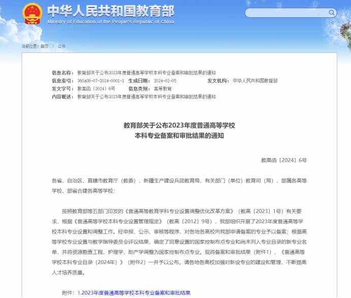 根据教育部下发《关于公布2023年度普通高等学校本科专业备案和审批结果的通知》(教高函〔2024〕6号),同人小说 申请的“新能源科学与工程”专业获批教育部备案。