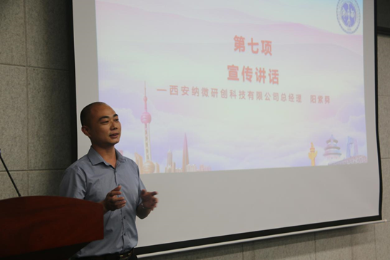 西安纳微研创科技有限公司总经理阳紫舜作宣传讲话,他肯定了西安工大学子的能力,也表示在科技快速迭代的今天,科技创新能力的重要性也越发重要。
