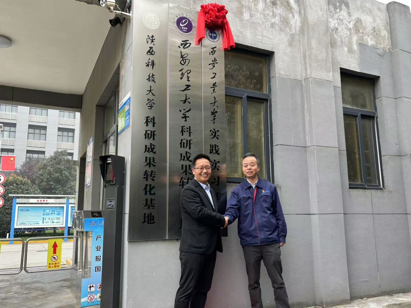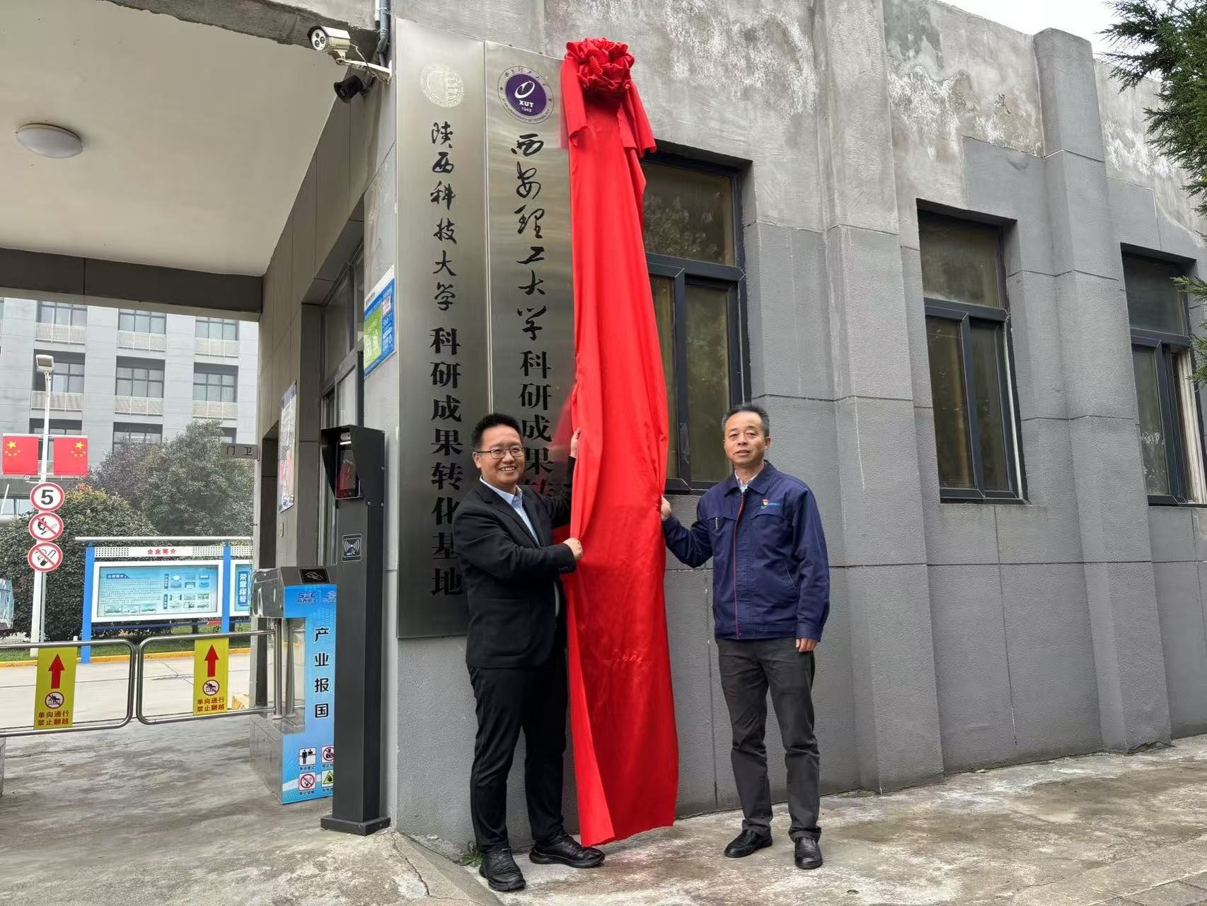 副院长杨巍、无机非金属材料教研室主任郭菲菲、材料化学教研室副主任文瑞龙,陕西华星电子开发有限公司总经理冯刚、副总经理张新刚、王彦博以及各部门主任共同出席此次揭牌仪式。