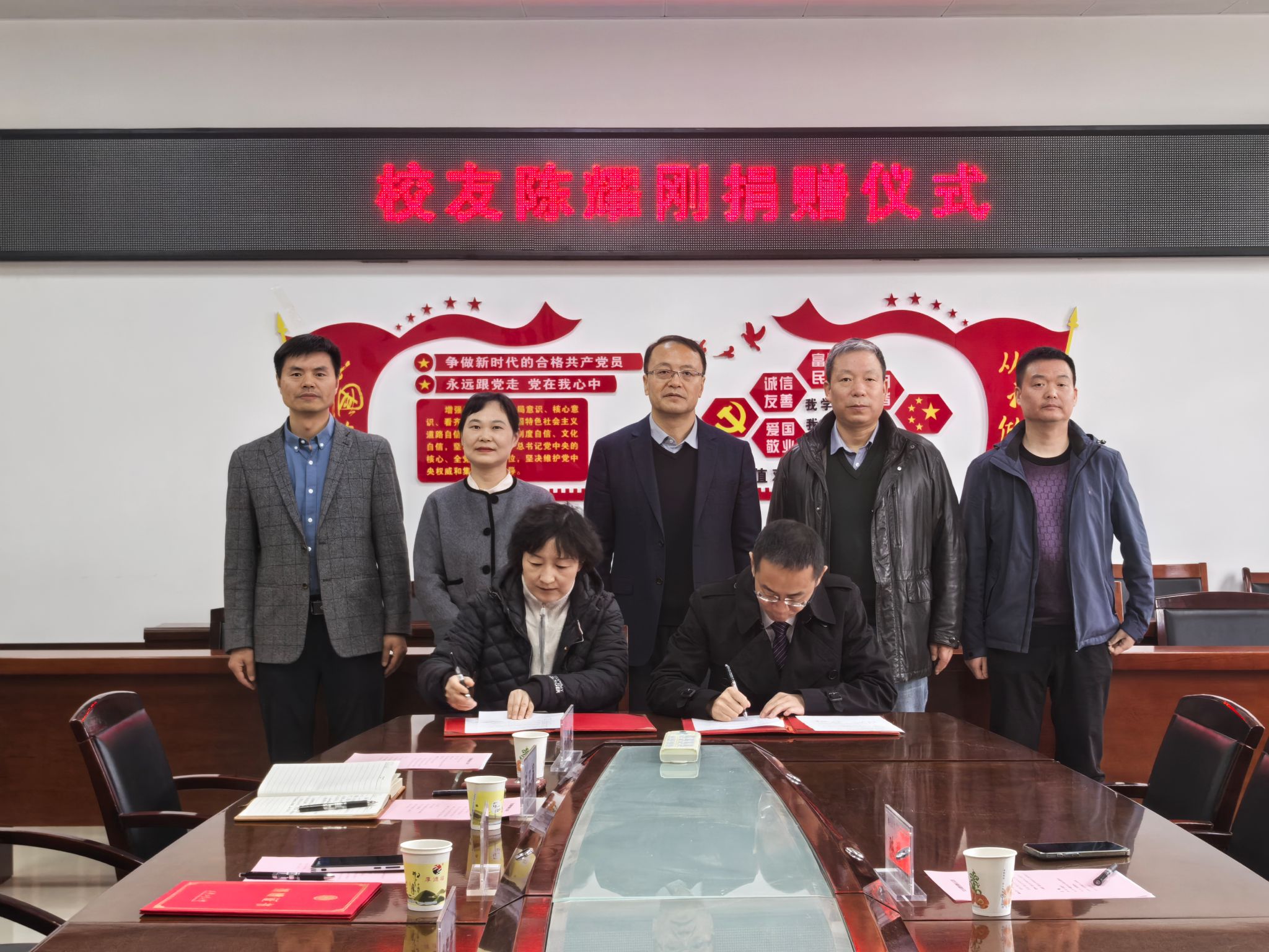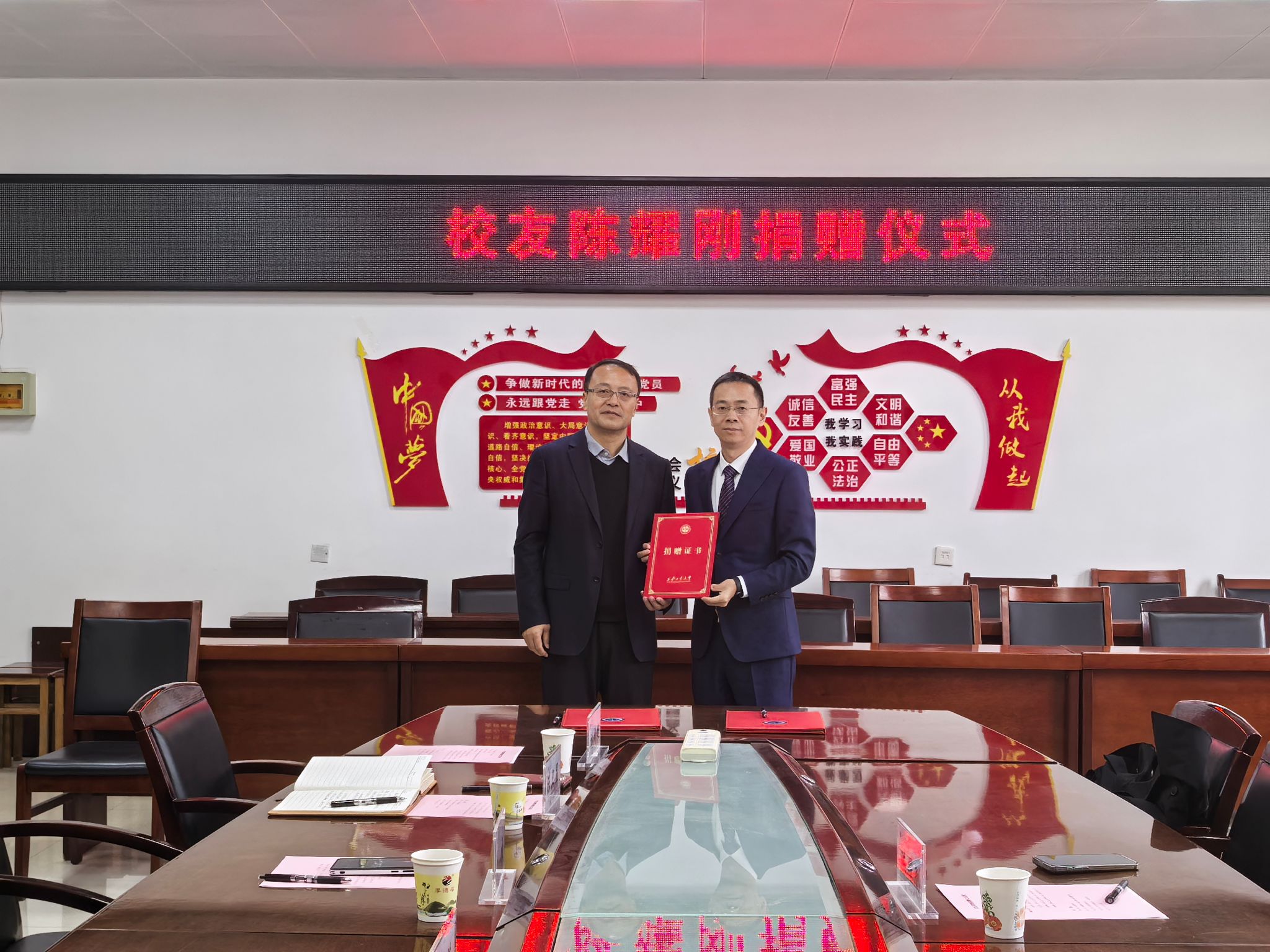 周黎萍代表学校与陈耀刚签署捐赠协议,马福为陈耀刚颁发捐赠证书。此次捐赠为同人小说