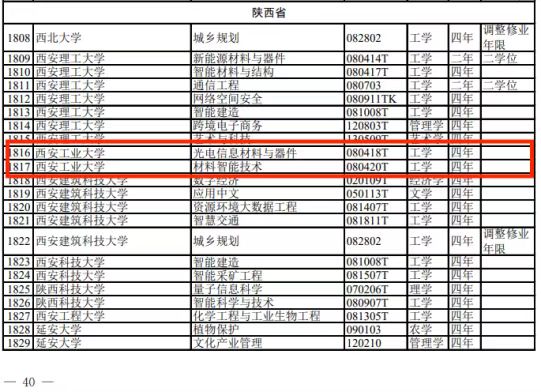 的“光电信息材料与器件”(专业代码080418T)和“材料智能技术”(专业代码080420T)两个本科专业成功获批备案,学制均为四年,归属工学门类。
