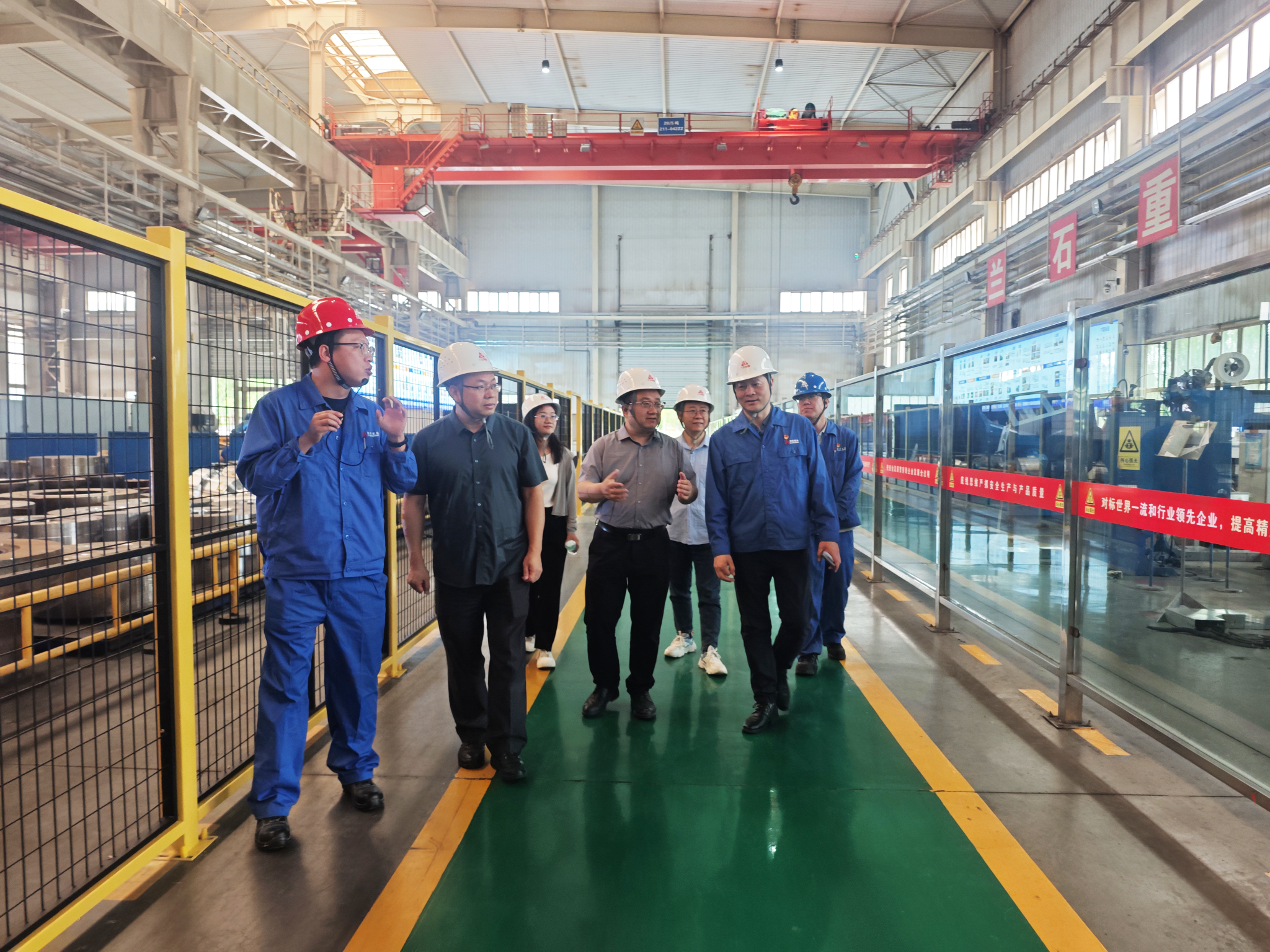 刘景龙首先对学院调研团队表示热烈欢迎。在兰石技师学院党支部书记宋道春的陪同讲解下,调研团先后参观了企业展厅、石油钻采机械、炼油化工设备、换热器、大型快速锻压及氢能新装备等生产线。通过实地考察,深入了解了兰石集团的发展历程与业务布局,对高端能源装备生产的数智化、系列化、信息化发展成果形成直观了解。参观结束后,双方在会议室召开座谈交流会,会议由刘景龙主持。