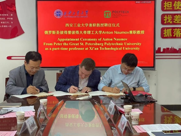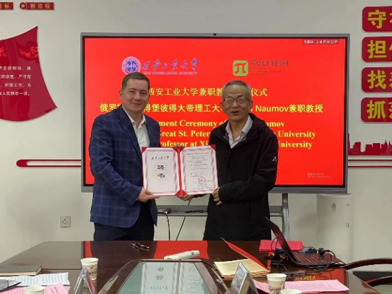 院长惠增哲与Anton A. Naumov签订兼职教授聘任协议。刘卜副校长为Anton A. Naumov颁发我校兼职教授聘书、并佩戴校徽。