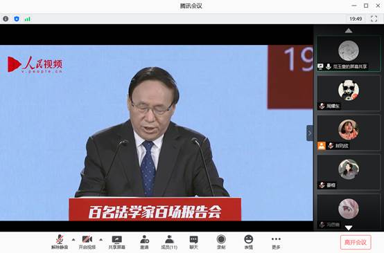 学生第四党支部于线上组织观看2020年“双百”活动中央和国家机关专场报告会——《一部具有鲜明中国特色实践特色时代特色的民法典》。党支部全体党员准时收看报告会。