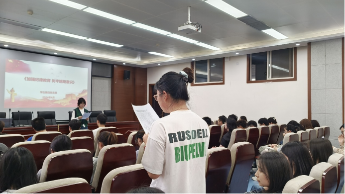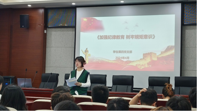学生第四党支部在工4-204开展“加强纪律教育,树牢规矩意识”主题党日活动。活动由党支部书记徐慧子主持,支部全体成员参加本次活动。