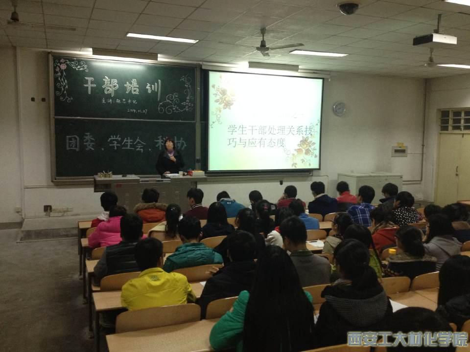 于教1-201召开主要学生干部培训大会,本次大会由材化院党委书记张忠进行培训演讲。参加本次会议的有大一各班班长及团支部书记,团委、科协、学生会全体干事。