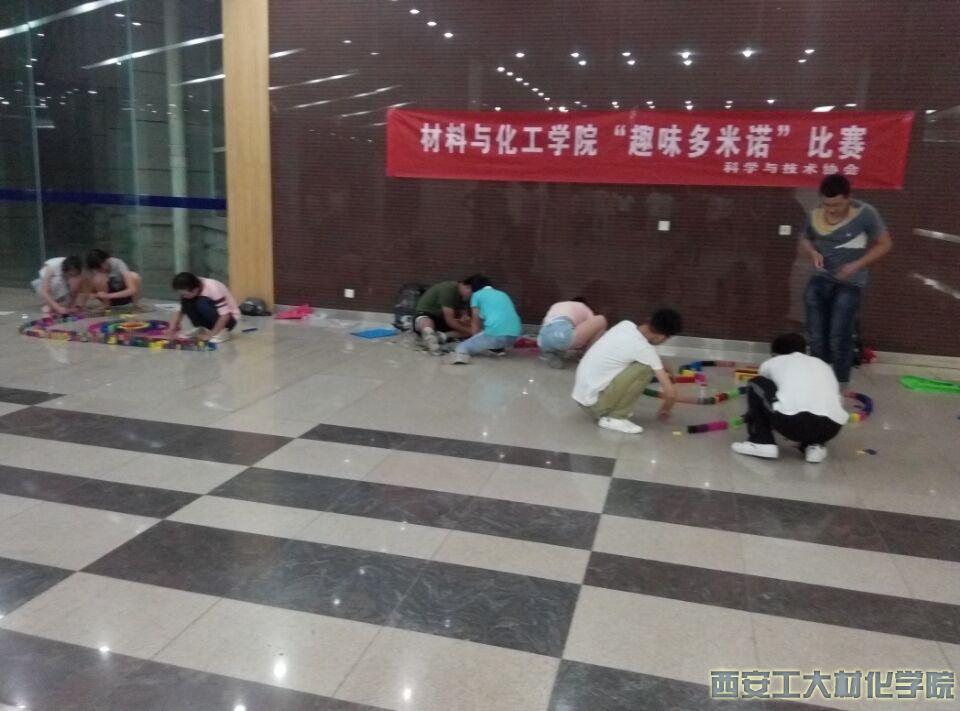 2015年5月19日下午,材化学院科学与技术协会“趣味多米诺”大赛第三期在图书馆一楼大厅顺利举行,来自经管学院、电信学院和机电学院的三组选手参加了本期比赛。