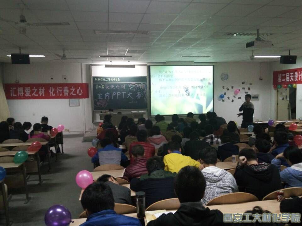 学生会知行部举办的第二届“天使计划”之室内PPT大赛在教2—206成功举行,出席会议的学生会部分主席和部长,全体参赛人员以及部分大一新生。