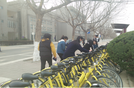 在时长一个半月的寒假后,校园小黄车留下了时间的脚步,因此在“雷锋月”里志愿者们让小黄车容光焕发--擦拭小黄车。大家签到后排成列队走向负责区域开始本次清洗活动。大家做好准备就开始工作,同学们从把手到坐垫都仔细地擦拭,不遗漏任何一个小细节。细心的志愿者们一起合作把小黄车擦的如同刚出场一般,在一次次擦拭下,校园的西门、东门、教学楼及图书馆的小黄车都被大家擦拭地焕然一新。