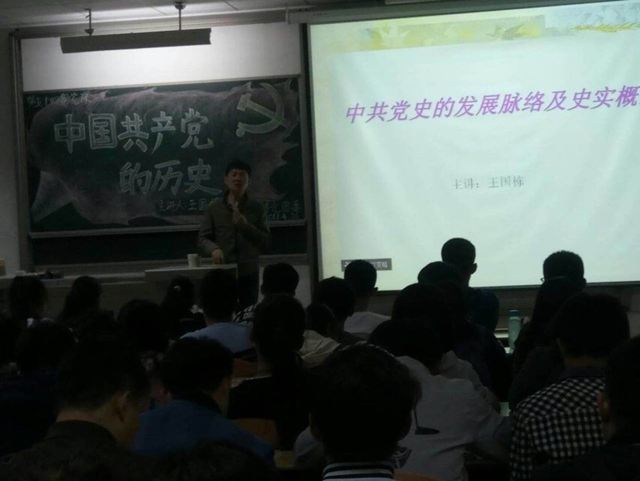 团委在教二210教室开展第五十四期党课第四讲,并邀请到了2016级辅导员王国栋老师为同学们讲解中国共产党的历史。各年级推荐的优秀共青团员参加了本次党课培训。