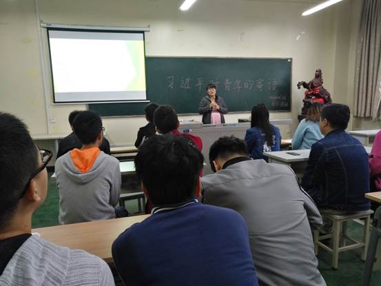 14030106团支部在工四——404召开以“习近平对青年的讲话”为主题的团日活动。本次活动由14级辅导员张瑞红老师主持开展,14030106团支部全体同学参会。