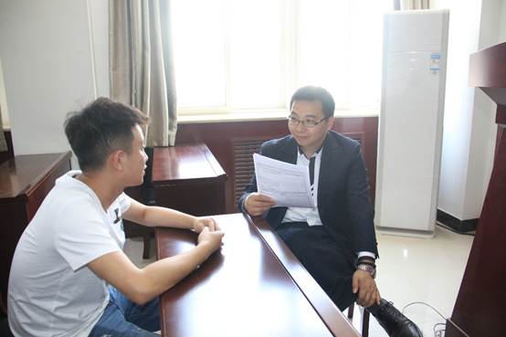 王震校友首先向大家详细地介绍了公司的发展历史、市场发展与运营、招聘岗位与需求、公司员工发展平台与空间等情况。随后向参会学生发放了公司宣传手册和招聘简章,并欢迎有梦想、有创新的学生来公司发展。然后,前来参加招聘会的同学向工作人员投递了简历。最后,王震校友对前来应聘的学生进行了现场面试,并与部分学生达成了协议。