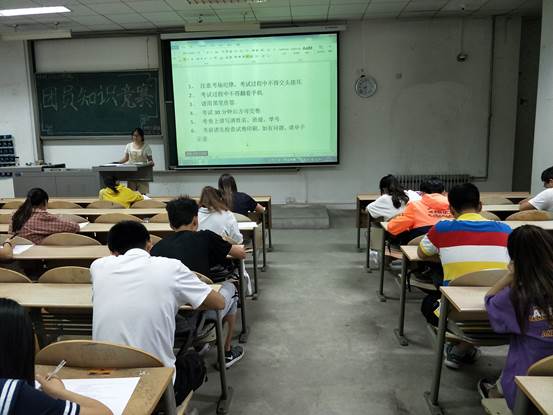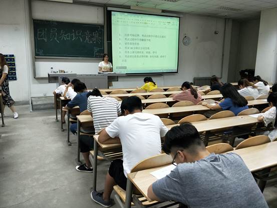 团委于2018年5月31日在教二-111组织开展团员知识竞赛。参加本次竞赛的为16级和17级推选出来的团员代表,由学生组织团委副书记尹相伟及团委部分成员负责监考工作。