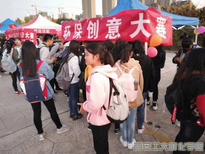 本次活动共有四类创作选择,分别为工艺品设计类,其要求作品原创主题明确,有独特的创新性且制作加工精美;海报创作类,其要求作品具有原创性且构思与创作体现生态文明、可持续发展和绿色环保理念,或具有环保宣传警示作用;影视创作类,要求具有绿色环保理念或宣传推广作用且时长为20分钟内以及项目申请类,其要求提交项目具体申报方案、项目实施结果总结报告和项目相关记录照片等。本次活动首先进行校内的选拔,当选拔通过后会进入到陕西省的复赛。当天的宣传活动中同学们都拿出了极大的热情前来咨询并踊跃报名参赛,在场的工作人员也都积极宣传,耐心给前来咨询与报名的人提供帮助。至此,环保创意大赛圆满开幕。