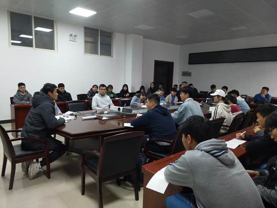 于工三410举行文明校园宣传手册学习大会,2017级学生代表参会,辅导员刘强珺老师主持会议,年级辅导员段强老师参加。