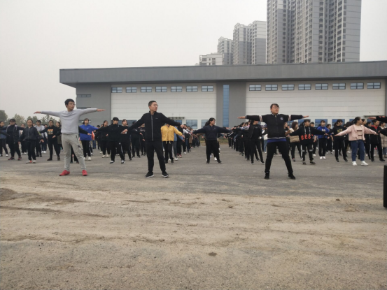 学生会组织学生于2018年11月09日中午12:30在未央校区田径场组织了广播体操训练,18级辅导员莅临现场指导训练。