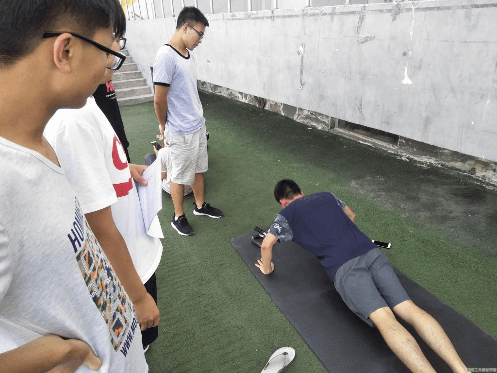 本次健身活动主题为社团日常体能训练及体能检测。训练主要内容为俯卧撑,仰卧起坐,平板支撑,1000米,50米,跳绳以及引体向上。训练期间,大家热情饱满,积极展示自己的能力,认真完成每一个训练任务。从热身到正式检测,从50米到1000米,每一个动作都井然有序,规范整齐。经过三个小时的不懈努力,同学们都大汗淋漓但直呼过瘾。至此,本次体能训练圆满结束。
