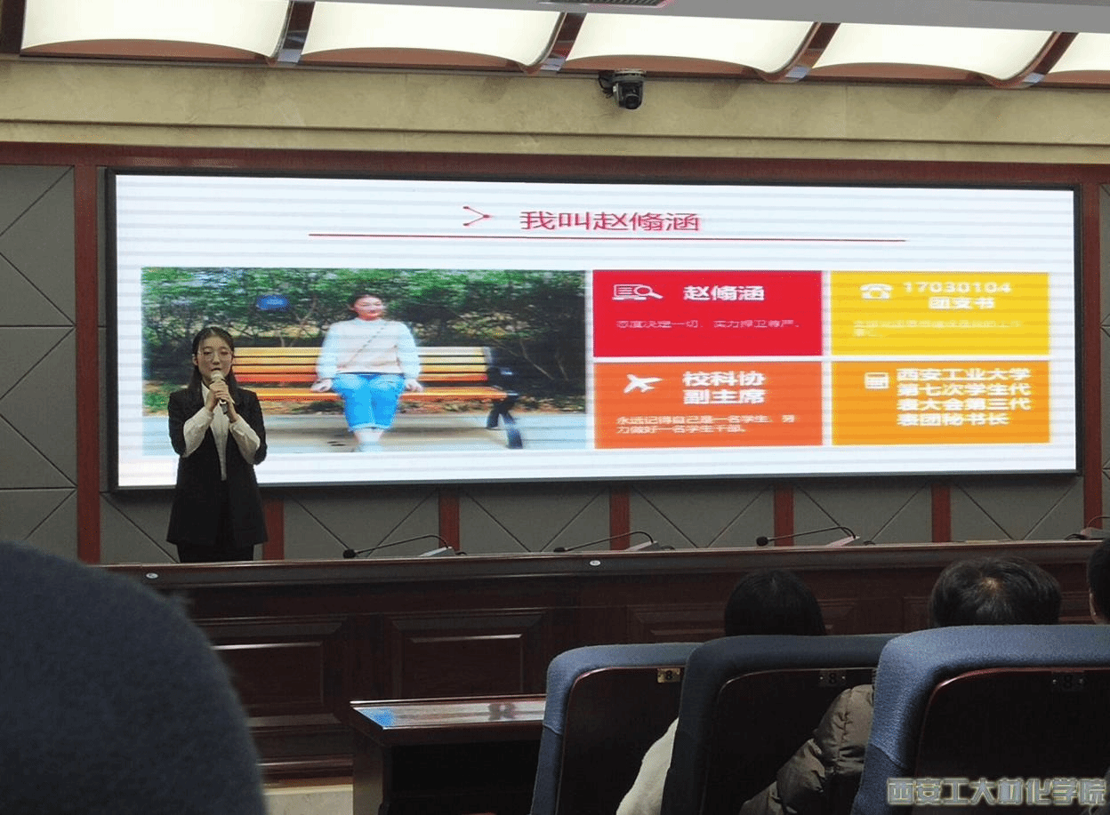 赵翛涵同学荣获魅力团支书称号并作为代表为大家展现自己及支部的风采,在展示中通过演讲的形式将她的工作、学习及生活中的细节给大家作以讲解,同时更多的通过论述彰显了材化学院团干部的魅力。而后学校领导对本届魅力团支书进行颁奖,同时鼓励学生干部们干好本职工作,提高了大家的工作热情。最后,大学生合唱团为进行了合唱《共青团员之歌》,激励了团员士气,展现了学生风采。到此,本次大会圆满结束。