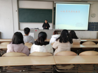 2018级辅导员张瑞红于2018年12月13日中午12:10在教1一101召开英语四级考试考风考纪教育大会。2018级辅导员张瑞红老师和参加报名四级考试的六名同学。