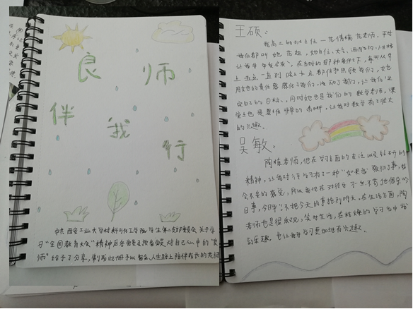 近日,为持续保持学习全国教育大会精神的热潮,领悟大会精神材化学院学生第二党支部以开展“良师伴我行-师德故事活动”为切入点,通过半个月以来的资料整理、继续学习,让每位成员参与其中的这种方式,将每位支部成员心目中对良师的描述记录成册。供党员随时学习备用。