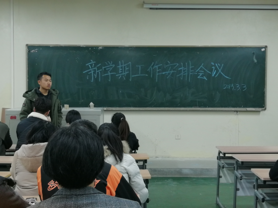 学生会于2019年3月3日19时在工三-504召开新学期工作安排会议,学生会主席团和全体部长参加本次会议。