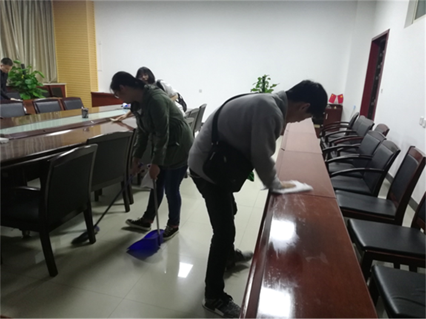 首先,辅导员王老师提倡大家进行有益、健康的毕业生活动,加强自律,文明离校,并且就本次活动做了详细具体的安排。接下来,大家分工明确,各司其职,对工三各个会议室进行彻底清洁整理,为学院营造一个整洁舒心的工作环境。最后,参与活动的同学互相交谈,言语间表达对学校的留恋,纷纷表示在校的最后几个月时间一定以身作则,给学弟学妹做好榜样,给学校留下最美的青春印象。