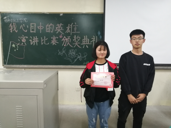 本次颁奖典礼由秘书部干事高佳龙和范思诺主持。首先,主持人宣布颁奖典礼开始,介绍出席本次颁奖典礼的嘉宾。接着,由主持人对本次活动进行总结,向观众阐述本次活动的意义及目的。随后正式进入颁奖环节,由科学技术协会副主席王怡之为三等奖获得者赵瑞同学颁奖,学生会副主席赵欣为二等奖获得者鲁逸凡同学颁奖,鲁逸凡她心目中的英雄是飞行员王伟,曾在南海上空捍卫我国权威的伟大人物令人敬佩。紧接着最激动人心的时刻终于到来,当主持人宣布汪琦梦同学获得本次演讲比赛一等奖时,台下发出阵阵掌声表示祝贺,由学生会主席李一航为其颁奖。汪琦梦同学在比赛中饱含热情,向观众及评委她心目中的英雄——那些无私奉献的消防员们,通过她的演讲,有更多的人收获了感动,对消防员肃然起敬。典礼最后,主持人请获奖选手和嘉宾合影留念。至此,本次颁奖典礼圆满结束。