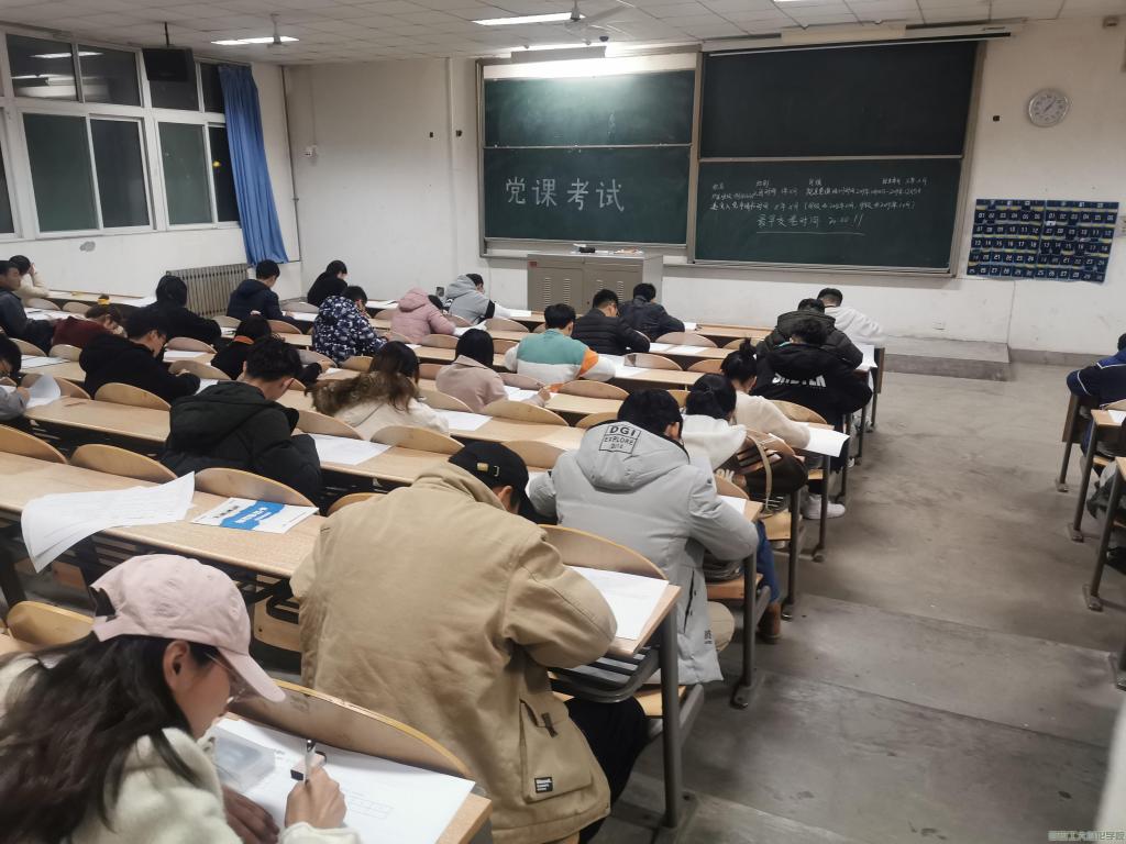 于2019年12月5日晚七时在教一-101,102,201,202组织安排党课考试。学院全体党课学员参与本次考试,党课负责人刘强珺老师监考。