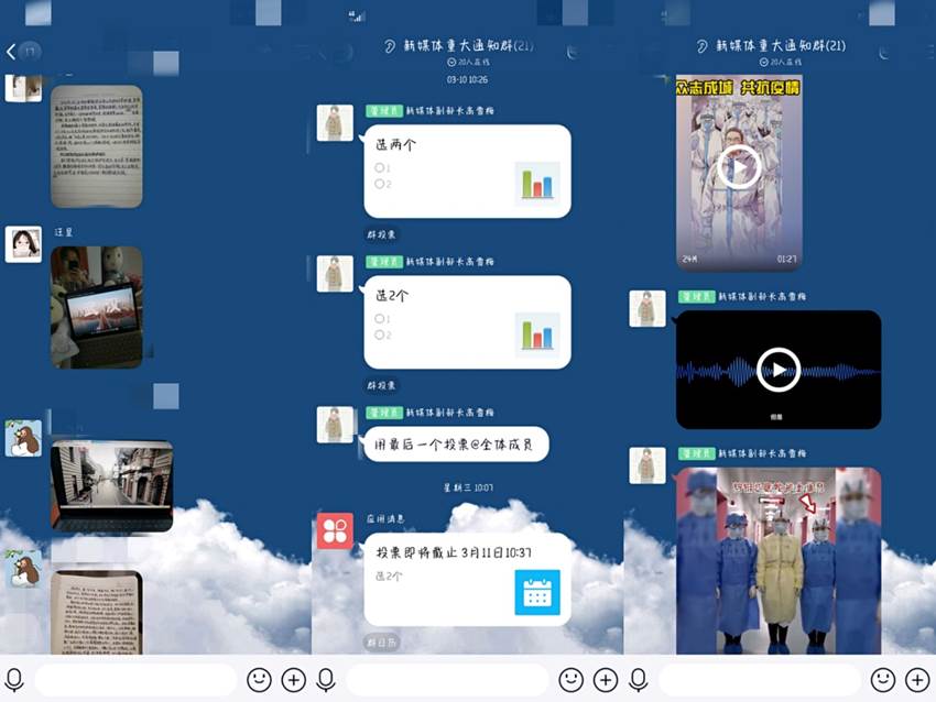 的网络平台上,呼吁更多的青年大学生加入抗击疫情的行动中,并积极响应时代的号召,勇立潮头,把个人利益融入国家当中,志存高远,展现新时代新青年的风采。正如同学们在视频中所说:哪有什么岁月静好,只是有人在替我们负重前行。没有一个冬天不会过去,没有一个春天不会到来,一切阴翳在我们面前都会过去,期待春暖花开!