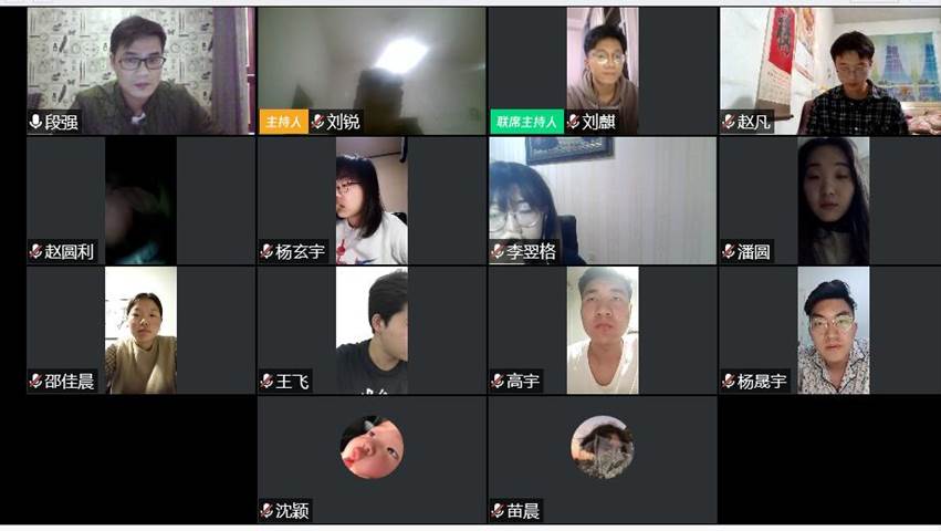 2017级9-15班通过腾讯会议召开五四评优工作安排会,本次会议由2017级辅导员段强老师主持,2017级9-15全体学生干部参加会议。