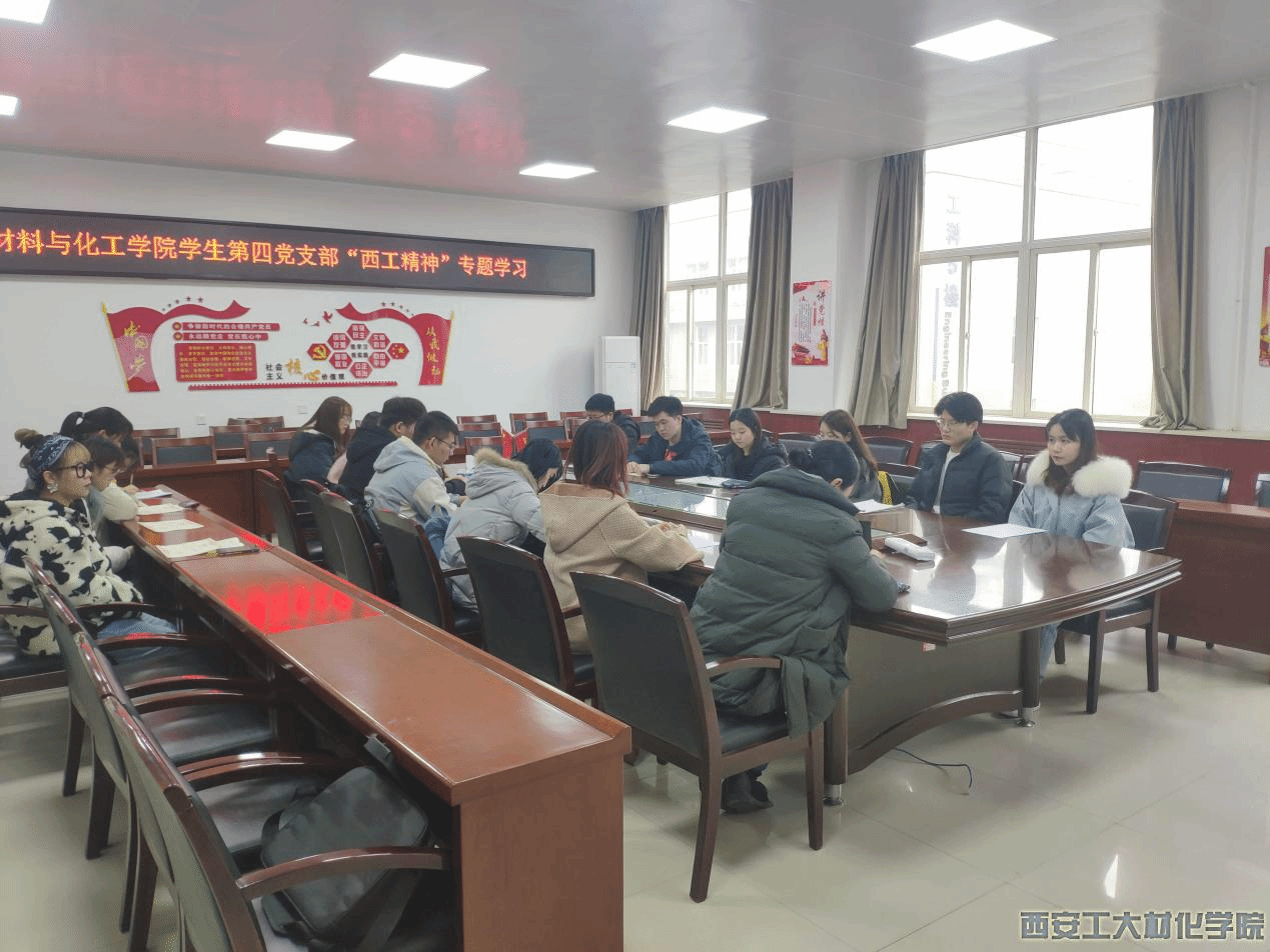 学生第四党支部于12月1日举办“西工精神”专题学习会。学院党委副书记张艳霞、支部书记徐慧子、支部全体成员参加本次学习会,会议由支部副书记封屿欣主持。