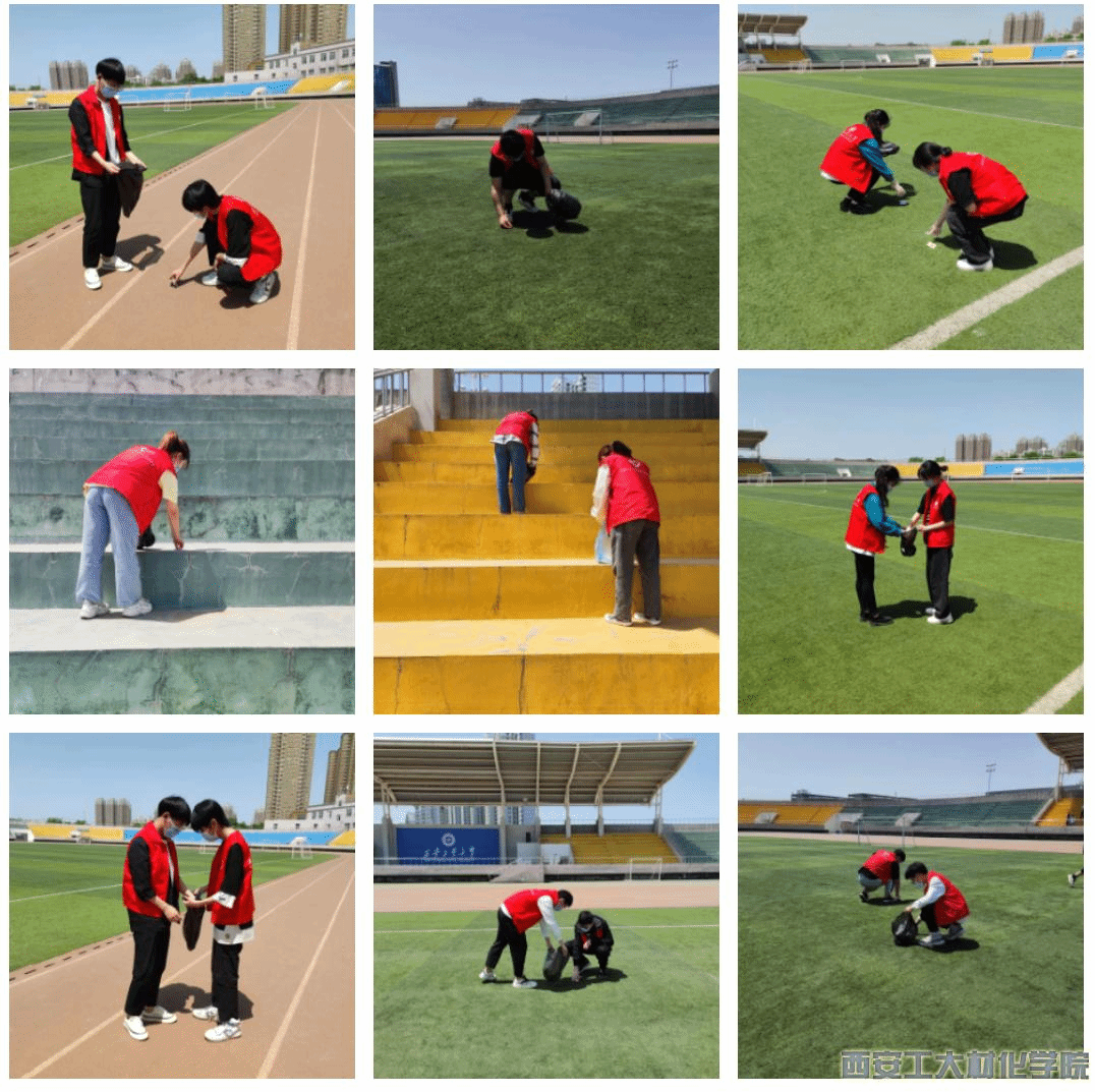 活动开始,学生干部李春瑶对本次活动进行了整体规划,按照田径场的规模分为四个区域进行垃圾清理。活动过程中,志愿者按照区域划分对田径场内的垃圾进行清扫,收集装袋后统一处理。志愿者们认真负责、无一懈怠,努力维持校园文化建设成果。工作完成后,志愿者们自发组成了检查小组,在田径场巡查不文明现象并进行规劝教育,倡导学生树立环保意识。