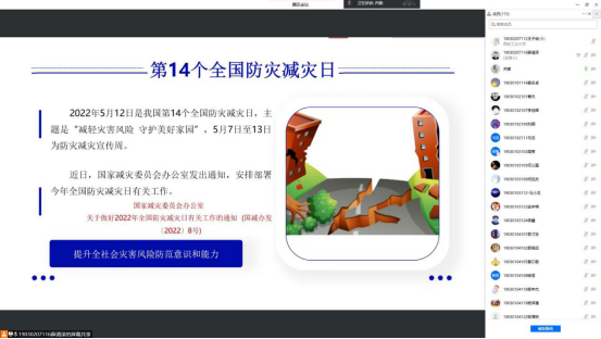 2019级召开了以“防灾减灾安全教育”为主题的线上年级大会。